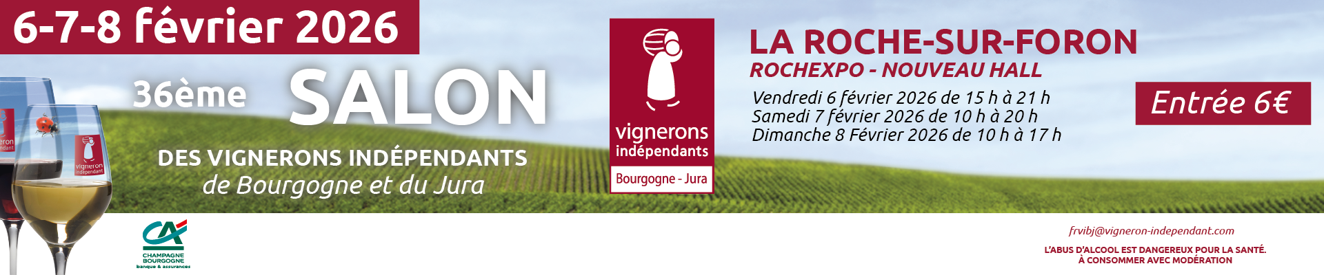 Le Salon des Vignerons Indépendants de Bourgogne et du Jura revient pour sa 36ème édition à Rochexpo du 6 au 8 février 2026 pour un week-end placé sous le signe de la découverte et du partage.